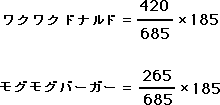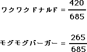ポテト チキン お店の売り上げ個数 W(ワクワク) 307 113 420 M(モグモグ) 193 72 265 食べ物の売り上げ個数 500 185 685 *この数は、統計用語で言うと「期待度数」と呼ばれるもので、二つのデータがまったく関係がないとしたときに期待される度数のことをいいます。