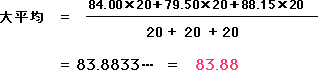 大平均は となります。 次は、 2. 各データと大平均のズレを計算して、合計します。(全分散という) 全分散は、全てのデータの「全体平均からのズレ」を表しています。 全分散は、すべてのデータについて、各データから、大平均を引いて二乗したものを合計することで求められます。 ポテトのデータはこちら 全分散を求めてください。 全分散は 終わったら答えを見る