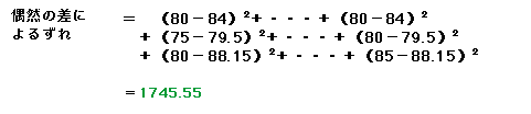 偶然の差は になりました。 次に、 4. 平均の差によるズレを計算します。 各条件の平均と大平均のズレを計算して、それに各条件のデータの個数をかけたものを合計します。 計算してみて下さい。 平均の差によるズレは 終わったら答えをみる