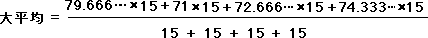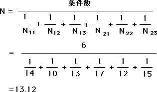 今回の場合、データ数がそれぞれ同じですが、データ数が各々の条件で違う場合は、全条件に共通する「平均データ個数N」を計算しなければなりません。
