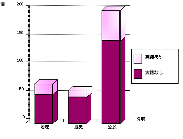 社会科論題における論題の種類の内訳は、事実論題36個、価値論題71個、政策論題170個であった。圧倒的に政策論題が多い。さらに分野毎の種類の内訳は、地理・公民的分野では政策論題の占める割合が大きいことに対し、歴史的分野では、価値論題が多かった。教科の性格を反映しているといえよう。