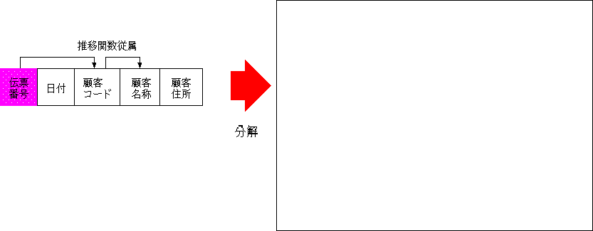第二正規形で、かつ、主キー以外の属性の間に推移関数従属の関係がないことを第三正規形という。