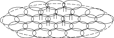 そこで下図に示すように,サービスエリアをいくつかのセルに分割して、同一チャネルを干渉妨害のおきない距離をおいたセルで使用する方式が考えられた。