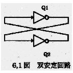 フリップフロップが誕生するきっかけとなったのが下図の「双安定回路」である。この回路は2つの自立的な安定状態を持つ。即ち