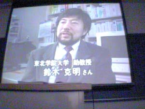 ほんの1分間ほどの撮影のために、3時間ほども撮影背景のレイアウトから準備をして、何度も言い直しをした。学者らしい雰囲気を作るために、デスクと書棚を背景にスーツを着てしゃべる。話す内容も放送側の要望で、さほど本意でないことを結局言ってしまったらしい。