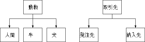 もう一つの例は、発送先、納入元、納入先は取引先という抽象化が可能である。