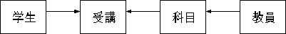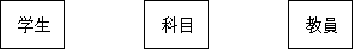 学生が科目を取るということからして、「学生」、「科目」、「教員」は明らかに必要だと言える。以上のものから開始し、必要ならば追加、不要と思えれば削除する。それを以下のように図示する。