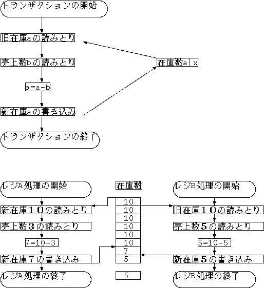 小売業{たとえばスーパーマーケット)で多数のレジでの商品の売り上げを行っているとする。売り上げの結果、商品の在庫が更新される処理プログラムがあるとする。そのプログラムは各々のレジで独立に実行されているとする。