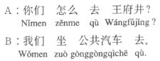 A:あなたたちは何に乗って王府井に行ったのですか?