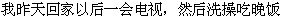 2)私は機能帰宅後テレビをしばらく見て、それから風呂に入り夕食を食べた。
