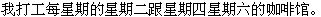 4)毎週火、木、土曜日に、私は近くの喫茶店でアルバイトをします。