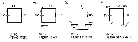 下図のように接続した時、電流は流れるか、流れるとすれば何Aの電流がどの向きに流れるか?