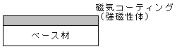 磁気デバイスの磁気表面の断面は、いずれも共通的に上図のようになている。磁気コーティング は強磁性体の微細な粉末を根って0.1μ程度の薄さに塗布したものである。(人の髪の細さは 約100μ)