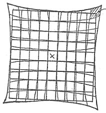 g.異方性中の四角は正方形であるが、外側に歪んだ 四角形を当てはめることにより、中の正方 形まで中央寄りに歪んで見える。