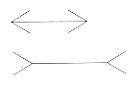 錯視:見間違い(万人に起こる) ・・・・客観との食い違い現象 ↓ 間違いの中には心の本質が現れる ☆今回は講義の中で紹介されたいくつかの錯視図を紹介します☆ ミューラー・リアー錯視両方同じ長さである。